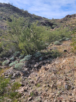 This claim has areas of exposed bedrock and also a narrow wash for with steep vertical drop.